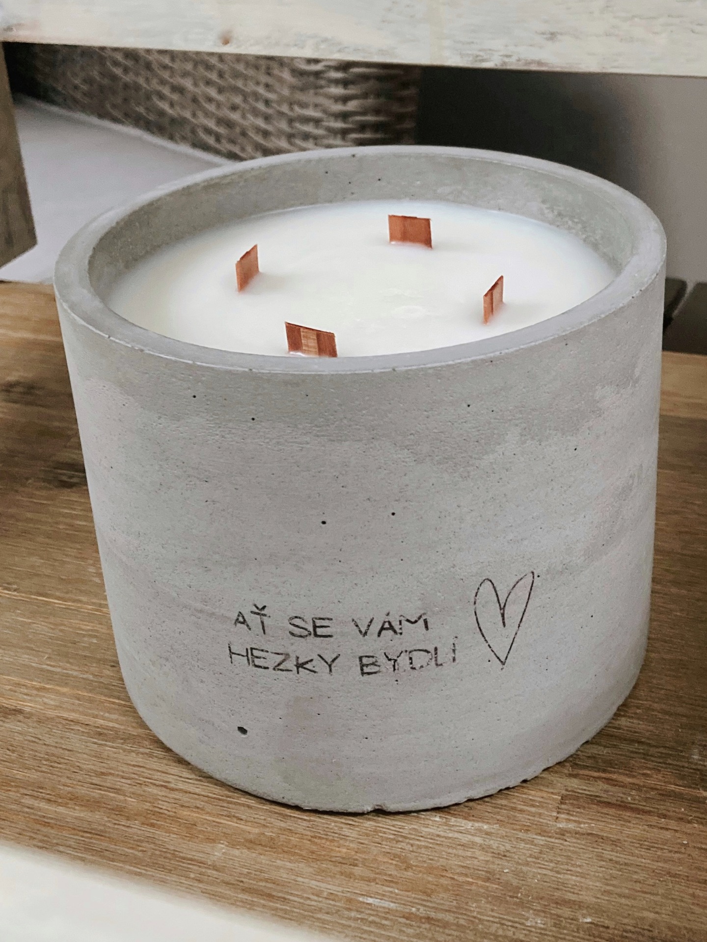 Pojď chvíli zapomenout na všední starosti a udělej si chvilku pro sebe s novou kilovou beton girlfriend:-). Přírodní kokosový vosk vysoké kvality zaručí její čisté hoření a jemné tóny vonných olejů vám navodí tu správnou atmosféru. ... dřevěné knoty už čekájí jen na tvoje zapálení.